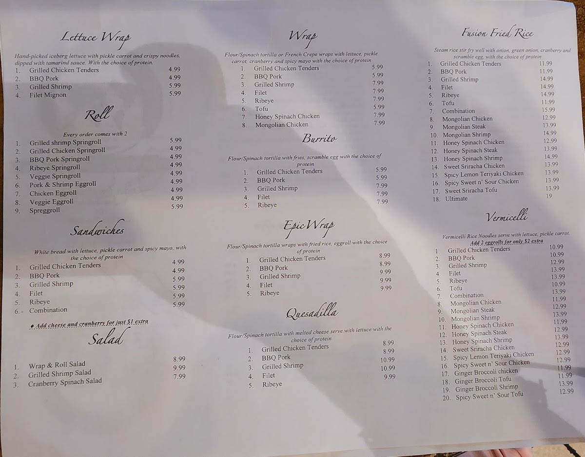 Wrap & Roll Menu