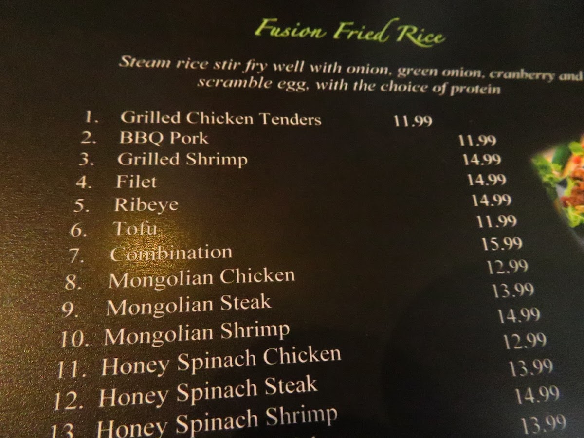For taco lovers, the Fusion Tacos are a must-try—choose from options like Ribeye, Grilled Shrimp, and Filet Mignon for a savory twist on a classic favorite. Don't overlook the crowd-pleasing Ultimate Fried Rice, loaded with protein choices and big enough for the whole family.